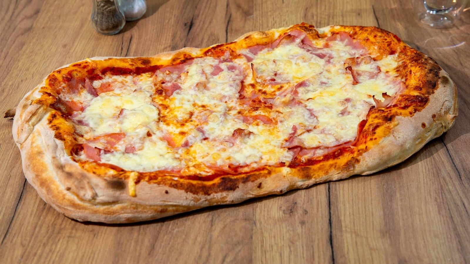 Blat, sos de roșii, mozzarella, șuncă porc, cașcaval